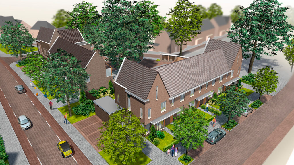 Visualisatie van het Woonsafari project in Vught. De nieuwe bewoners konden zelf de indeling van de verschillende ruimtes in de woningen samenstellen i.s.m. de architect. Vandaar de naam Woonsafari (een ontdekkingstocht naar de ideale woningindeling).